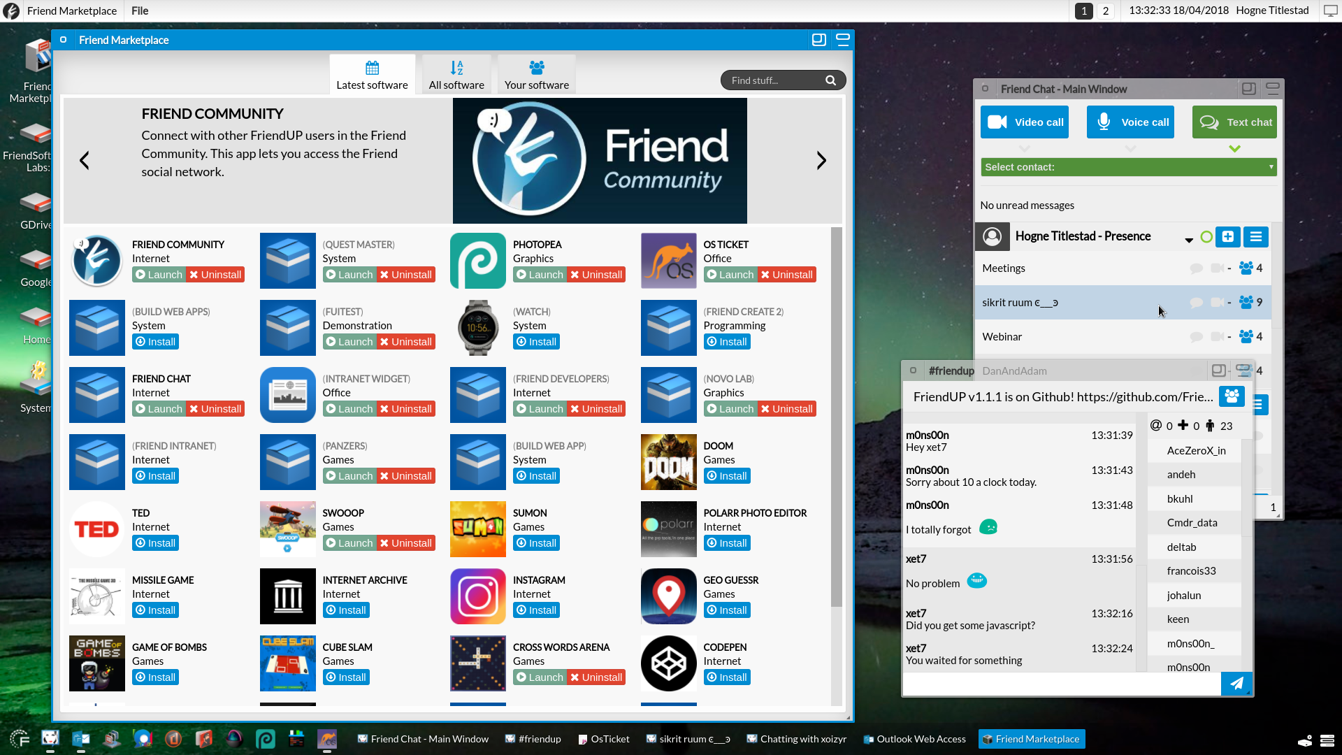 - Currently xet7 is looking at could Sandstorm run inside of Friend in desktop window (iframe)
