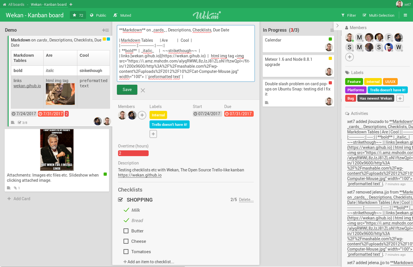 - Website: Wekan Kanban board and Wekan Team (xet7, maintainer of Wekan) / Sandstorm / Friend