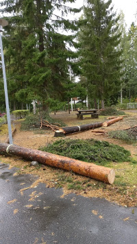 - I do like to listen singing of birds, days when sun is shining, days when it rains. Although, some days there is sound of chainsaw as can be seen from photo taken today – yes they did finally get permission to cut the trees at city where I live. Well, a year ago someone cut a iron bar at the parking lot with a circular saw, that was also nice.