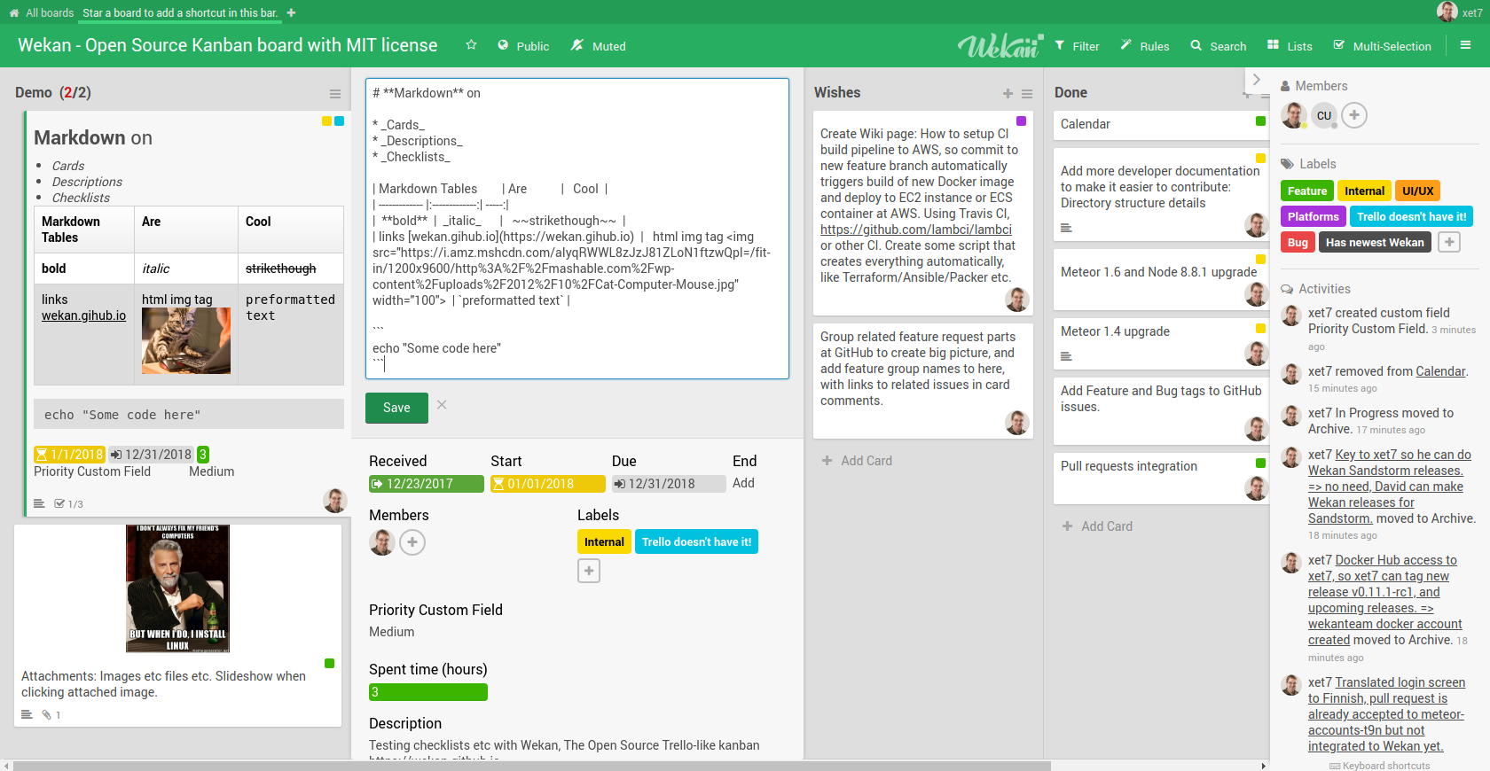- Companies and individuals using my Wekan Commercial Support for support and new Wekan features, and being understanding with the delays. I really try to get everything implemented, development is not easy.